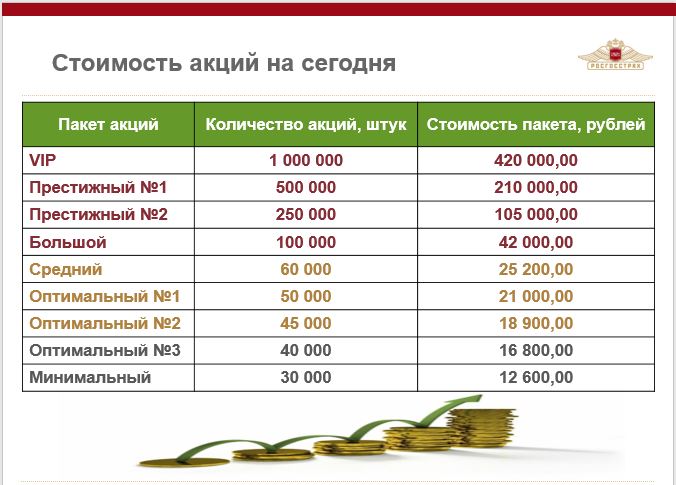 Предлагаем акции любым пакетом, минимальный пакет 30 000 акций - стоимость пакета 12 600 руб. Подробности по телефону 8-915-777-99-72 - Антон