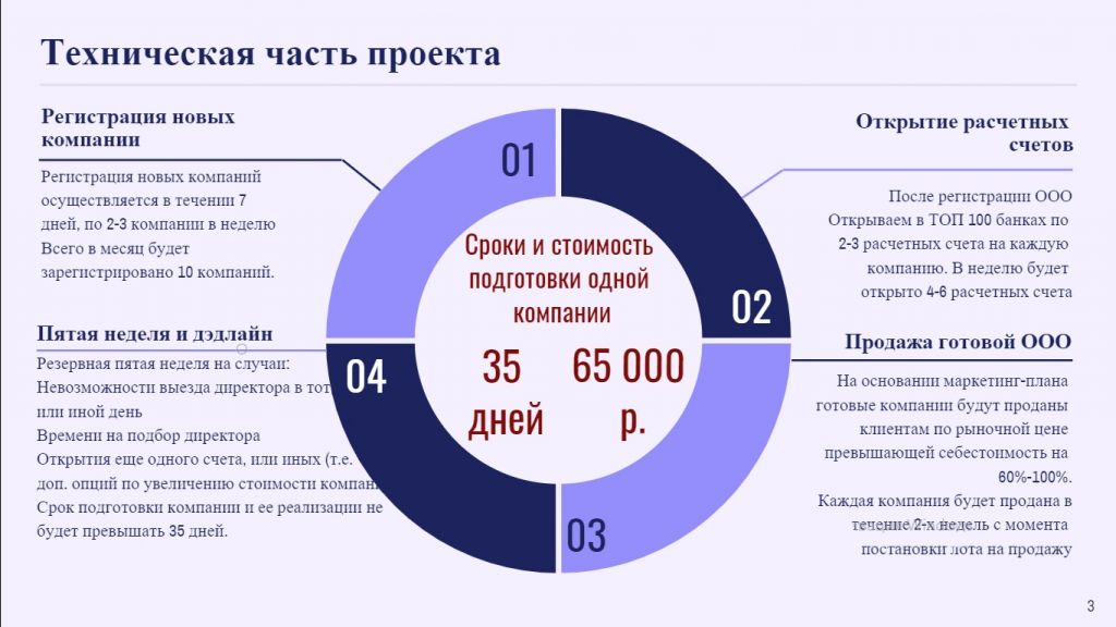 Шаг 3. На основании маркетинг-плана продаю готовые компании клиентам по рыночной цене превышающей себестоимость на 60%-100%, в течение 2-х недель с момента открытия расчетных счетов.