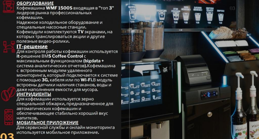 Автоматизированные кофе-корнеры самообслуживания - Это нечто большее, чем просто кофейный уголок. Это стильное и ультрасовременное решение, основанное на современных IT технологиях, профессиональных немецких кофемашинах и безупречном кофейном зерне. А так же с IT-решением, представляющую собой систему розыгрыша призов и скидок(отсюда и название), которое позволяет стимулировать импульсный спрос и максимально увеличить прибыль от продажи кофе на 300% от 30 до 150 стаканов в сутки!! Основная задача – превратить процесс заурядной покупки кофе в настоящую игру. Природный азарт есть в каждом из нас. Он проявит себя при первой возможности. Это позволит превратить обычную кофемашину в настоящий игровой автомат.