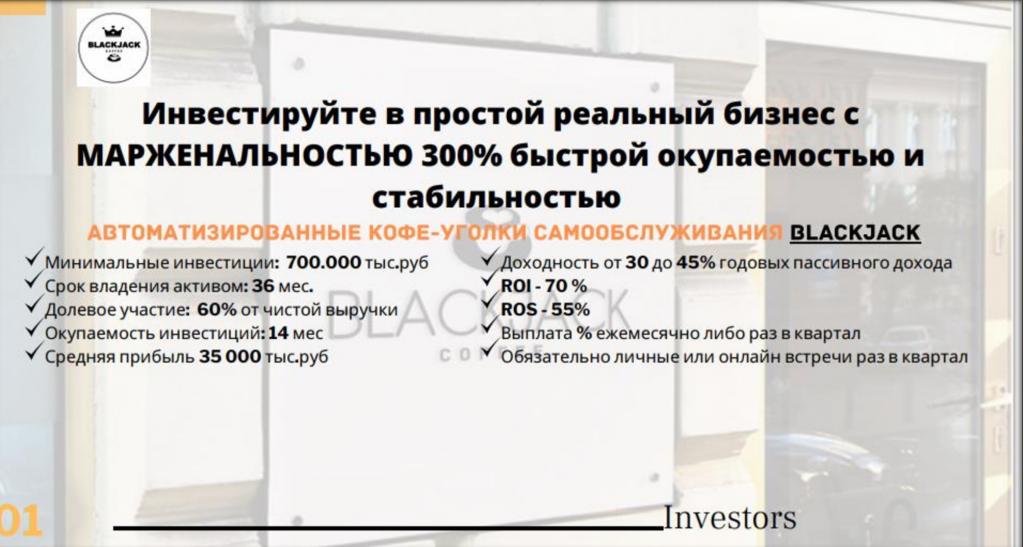 Я полностью открыт для предложений, с удовольствием обсужу все детали и отвечу на все интересующие вопросы, а так же предоставлю всю необходимую документацию (бизнес-план, финансовую модель, презентацию)