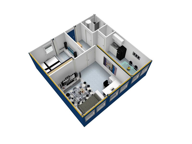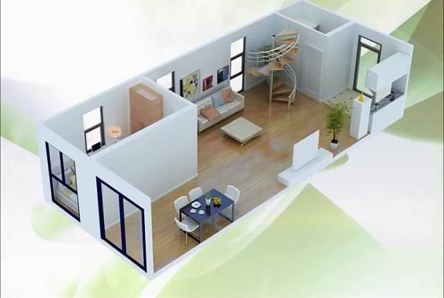 Эти дома-модули действительно мобильные. Их производят на фабрике (уже со встроенной мебелью, кухней, ванной и всеми техническими коммуникациями), там же собираюти привозят куда скажете: Такой дом-модуль не отличишь от обычного дома, построенного традиционно,на фундаменте. А стоит он в несколько раз дешевле. Причем, внутри он не отличается от обычного дома, там все есть (и кухня с плитой, и ванная с туалетом):